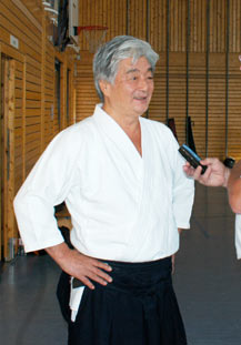 Je n’ai pas trop confiance (rires). Ce n’est pas que je l’évite, mais je préfère me concentrer sur l’aïkido. Il y a beaucoup, beaucoup d’experts … bien sûr, pour ce qui est des techniques, si je prends en main un jo ou un bokken, je les connais, mais je ne me concentre pas beaucoup là-dessus. Je n’ai rien contre, mais je n’ai pas assez confiance pour enseigner ce que je sais. Qui sait, quand je serai bien plus âgé, peut-être … (rires) mais j’ai la chance d’être encore en très bonne santé physique, d’être capable de bouger sans difficulté, et tant que je pourrai faire ça, je me concentrerai là-dessus.